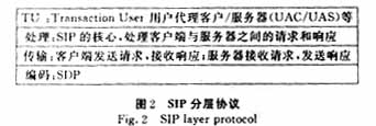 媒體封裝主要采用ITU-T的G系列和H系列建議,G系列用于語音壓縮,H系列用于視頻壓縮,提供視頻電話。SIP在協(xié)議棧中完成的功能是建立和終止多媒體通信:①用戶定位(user location):確定通信使用的終端系統(tǒng)位置;②用戶可用性判定(user availablity):確定被叫方是否愿意加入通信;③用戶能力判斷(user capability):確定通信使用的媒體類型及參數(shù);④會(huì)議建立(session setup):在主、被叫之間建立約定的支持特定媒體流傳輸?shù)倪B接;⑤會(huì)議管理(session management):包括傳輸、終止會(huì)議,修改會(huì)議參數(shù),調(diào)用業(yè)務(wù)。