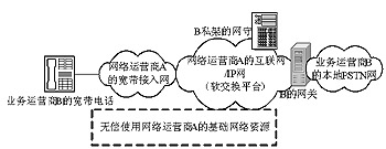 其次,目前國內VoIP的運作模式,在VoIP運作模式中涉及到網絡運營商和業(yè)務運營商。我們用下面的例子來具體說明該問題。假定在某地,在其他運營商服務區(qū)域內沒有本地網資源的業(yè)務運營商B利用該服務區(qū)內擁有本地網資源和互聯網資源的網絡運營商A的ADSL寬帶接入到A的公眾互聯網上,在該網上,業(yè)務運營商B通過非法架設網守(計費控制系統)及網關等設備開展VoIP業(yè)務,然后在自己服務區(qū)域內的PSTN網絡上進行“落地”,這樣則直接旁路了網絡運營商A的電話語音業(yè)務,而網絡運營商A自己建設維護的互聯網則沒有得到任何補償,于是只能采用技術跟蹤然后封堵的方式來遏止業(yè)務運營商B的VoIP業(yè)務開展。在該情況下,業(yè)務運營商B的VoIP業(yè)務很難做大,而網絡運營商A也可以明正言順的進行封堵政策。最終受到損害的將會是整個VoIP產業(yè)(圖1)。因此,從成本和公平角度來說,必須對建設維護互聯網的網絡運營商A進行一定的補償,使其有足夠的激勵去讓VoIP業(yè)務提供商利用其網絡開展業(yè)務。也就是說必須建立VoIP承載網運營商和VoIP業(yè)務運營商之間的結算體系!