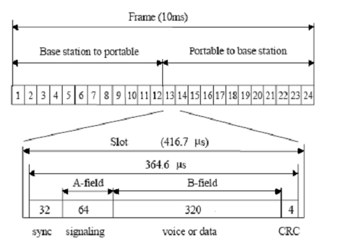 數(shù)字增強(qiáng)型無(wú)線通訊標(biāo)準(zhǔn)(DECT)是整合數(shù)據(jù)應(yīng)用的第一種無(wú)繩電話標(biāo)準(zhǔn)之一。為了保證市場(chǎng)競(jìng)爭(zhēng)力,DECT著力于創(chuàng)建一個(gè)可互操作的平臺(tái),該平臺(tái)能夠同時(shí)為住宅及商業(yè)市場(chǎng)提供話音及數(shù)據(jù)應(yīng)用。根據(jù)這一策略,DECT正為固定網(wǎng)絡(luò)運(yùn)營(yíng)商提供一系列增強(qiáng)其競(jìng)爭(zhēng)力的基礎(chǔ)設(shè)施。圖1:DECT中的24時(shí)隙