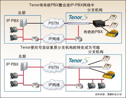 能使H.323和SIP終端得以繼續(xù)適用、還能在IP網(wǎng)絡中提供緊急呼叫(E911)服務,這些性能使IP網(wǎng)關對運營商更具吸引力。寬騰公司從Tenor產(chǎn)品開始瞄準了企業(yè)用戶。