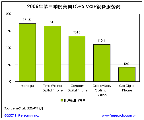 2006年第三季度美國(guó)TOP5 VoIP設(shè)備服務(wù)商