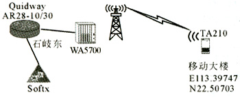 組網(wǎng)時,由于BS(石岐東)需要與廣州的SoftX連接,因此,實際組網(wǎng)方案通過傳輸設備連接公安局與移動大廈;然后通過移動大廈的CMNet網(wǎng)絡連接廣州的SoftX。在該個組網(wǎng)中,視距傳播環(huán)境通過固定在移動大樓支架上的遠端站實現(xiàn),非視距傳播環(huán)境通過移動的遠端站實現(xiàn)。