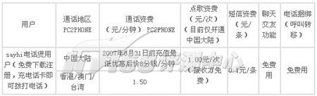 VoIP的重點是在于語音質(zhì)量、通話費用上,從測試結(jié)果來看,基本上各個軟件都能得到較好的通話質(zhì)量,個人感覺質(zhì)量最好的是Skype。在通話費用方面,酷寶、RedVip、SayHi和UUCall的費用一樣,都是0.12元/分鐘,但SayHi和UUCall通過優(yōu)惠措施把價格降得很低,非常的實惠。