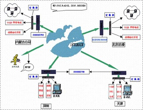 規(guī)模如此龐大的餐飲公司,隨著業(yè)務(wù)的迅速發(fā)展,公司不斷面臨著管理分支機構(gòu)的成本、覆蓋范圍和信息安全的巨大壓力,長期巨額的電話費用,也是公司一筆不小的開支。因此,公司迫切需要一種異地安全互聯(lián)的方案,上傳財務(wù)數(shù)據(jù),并且要將辦公數(shù)據(jù)和財務(wù)數(shù)據(jù)分離開來。同時在此基礎(chǔ)上,要設(shè)法降低電話費用。