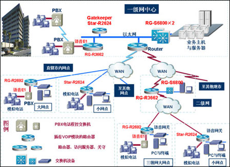 3、銳捷26系列VOIP路由器支持Gatekeeper功能,通過簡單的配置連接到關(guān)守(Gatekeeper)上就可以與全省各地進(jìn)行VOIP連接,而省略了煩瑣的靜態(tài)撥號對等體的配置,方便而高效。