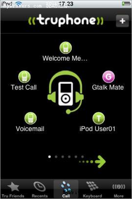 互聯(lián)網(wǎng)電話公司Truphone公司最近在App Store放出了其免費(fèi)的音樂(lè)程序,這款程序可以讓iPod Touch的用戶互相之間通過(guò)WiFi連接撥打或接聽VoIP電話,并可使用Google
