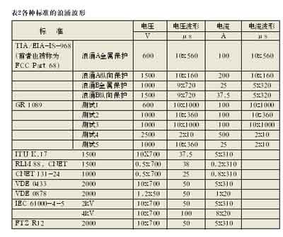 K.20/K.21(國際電信聯(lián)盟)和中國的YD/T993、950標準。不同的標準要求保護器件、技術(shù)和拓撲具有不同的穩(wěn)定性狀態(tài)。通過比較我們發(fā)現(xiàn),符合美國標準的保護器的抵御能力要比符合國際電信聯(lián)盟標準的高,更比符合中國標準的為高。在大部分情況下,符合美國標準的保護解決方案基本上都能通過ITU-T