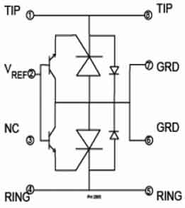 FXS要求SLIC保護器能夠?qū)⒍嘤嗟睦擞哭D(zhuǎn)移到SLIC T/R線路中。這是利用P1101DF-1的單向特性完成的。線路中出現(xiàn)的正浪涌將被反并聯(lián)二極管轉(zhuǎn)移到SIDACtor