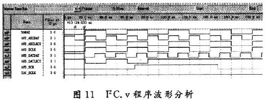 AUD_ADCDAT與AUD_DACDAT分別為I2C總線的輸入輸出,由圖11中可見其延遲為9.033 ns,實現(xiàn)了語音數(shù)據(jù)的實時處理。