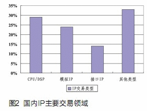 Express等);三是模擬IP(如PLL,ADC等)。這三類IP需求占到總需求的一半多。而其他的交易類型如標準的內(nèi)存模塊,以及一些面向特殊應(yīng)用的IP,則占據(jù)國內(nèi)需求的三分之一(見圖2)。