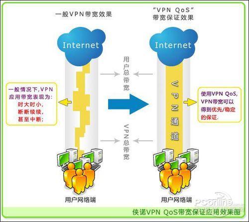俠諾的VPN QoS,即能深入“大水管中的小水管”,將QoS帶寬管理的理念引入到VPN通道中,可謂是一個(gè)實(shí)用的技術(shù)創(chuàng)新,它可針對(duì)每一種VPN通道中的應(yīng)用設(shè)定最高可使用帶寬,這樣一來(lái)就可以防制某些VPN應(yīng)用大量占用單一VPN通道整體帶寬,全面保障每項(xiàng)VPN應(yīng)用可使用的帶寬,解決單一通道下,VPN應(yīng)用帶寬分配不均的問(wèn)題。