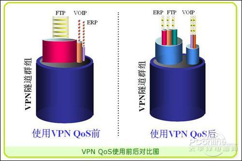 一般情況下VPN線路帶寬所表現(xiàn)出來(lái)的時(shí)大時(shí)小、斷斷續(xù)續(xù)、甚至中斷等等不夠用或不穩(wěn)定的情況,在使用VPN QoS以后可得到根本的好轉(zhuǎn),它可以對(duì)VPN總體帶寬進(jìn)行大小分配,進(jìn)行優(yōu)先而穩(wěn)定的保證。有了足夠的VPN線路帶寬,才能快速的進(jìn)行VoIP、ERP等應(yīng)用。因此保證VPN整體帶寬是VPN應(yīng)用的基礎(chǔ)。
