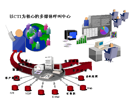 呼叫中心與互聯(lián)網(wǎng)技術(shù)的結(jié)合,意味著客戶在瀏覽某一公司的網(wǎng)頁(yè)時(shí),如果希望就某一問(wèn)題與客戶服務(wù)代表進(jìn)行討論,此時(shí)客戶并不需要主動(dòng)撥打客服中心的電話號(hào)碼,然后等待轉(zhuǎn)接到空閑的業(yè)務(wù)代表,再花時(shí)間向業(yè)務(wù)代表解釋他/她的意圖。而是擁有多種與呼叫中心聯(lián)系的方式,從而將貴公司的互聯(lián)網(wǎng)客戶服務(wù)與電話客戶服務(wù)更好地結(jié)合在一起,為您的客戶提供全方位、多元化的服務(wù)。優(yōu)利公司相信,這種客戶服務(wù)代表與Internet的互動(dòng),將為客戶服務(wù)與銷售提供一個(gè)強(qiáng)有力的媒介環(huán)境。