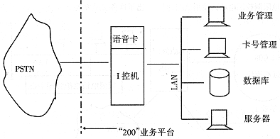 由于大多數(shù)“200”業(yè)務(wù)平臺采用的是上控機(jī)及語音卡系統(tǒng)(見圖1所示),由語音卡完成語音提示及交換處理,整體話務(wù)處理能力差,不太適合大中城市使用;另外其語音提示是經(jīng)過語音卡壓縮記錄在硬盤上,放音時經(jīng)讀盤、解壓恢復(fù)成語音信號,處理速度慢,交換占用總線資源,在話務(wù)量大時,易出現(xiàn)阻塞現(xiàn)象,并將影響現(xiàn)有的“200”業(yè)務(wù)。