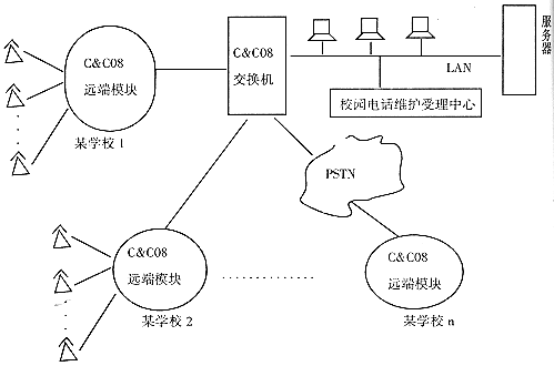 解決校園電話的問題主要在于兩個方面,首先是要解決學(xué)生打電話的問題,其次是要解決學(xué)生接電話的問題。對于前者,目前各地基本上都是采取在校園安裝投幣電話、磁卡電話及IC卡電話的方式,但這些電話機(jī)投資較大、防盜打能力有限、維修不方便。放在室外易受損、被盜、覆蓋率有限,使得在人口密集地區(qū)不可能大規(guī)模使用,而且它們也不能很好地解決學(xué)生接電話的問題。要想從根本上解決校園電話的問題就在于給每個學(xué)生宿舍(醫(yī)院中即每個醫(yī)院病房)裝電話,然后利用所裝的電話提供多樣化的可供學(xué)生選擇的業(yè)務(wù)。