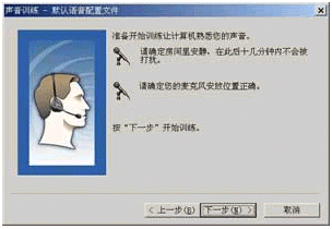 點(diǎn)擊"下一步"按鈕后,就會(huì)看到如圖11所示的對(duì)話框,請(qǐng)根據(jù)窗口中的提示對(duì)話信息朗讀,如果朗讀正確,對(duì)話信息將會(huì)反白顯示,如果你朗讀錯(cuò)誤,請(qǐng)重新進(jìn)行。