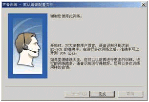 當(dāng)你15分鐘的訓(xùn)練全部結(jié)束后,將會(huì)看到如圖12所示的對(duì)話框,此時(shí)原來(lái)默認(rèn)的用戶(hù)配置文件將用剛才所收集的訓(xùn)練數(shù)據(jù)進(jìn)行更新,稍候片刻,你就會(huì)看到如圖13所示的對(duì)話框,告訴你語(yǔ)音訓(xùn)練已經(jīng)結(jié)束。