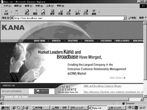 Kana是美國(guó)在線服務(wù)領(lǐng)域的知名公司,其eCRM軟件在客戶關(guān)系管理領(lǐng)域極具代表性。Kana公司剛開始只提供電子郵件響應(yīng)管理技術(shù),但是通過一系列的收購(gòu)舉措,Kana已經(jīng)可以提供端到端的客戶服務(wù)解決方案。最近,Kana并購(gòu)了美國(guó)Broadbase公司,成為在線客戶服務(wù)領(lǐng)域的“巨頭”。該公司的旗艦級(jí)產(chǎn)品主要是針對(duì)Email回復(fù)的客戶服務(wù)系統(tǒng),Kana的Email客戶服務(wù)軟件被Yahoo!和AOL等著名的網(wǎng)絡(luò)公司采用。