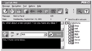 像ICQ、OICQ、MSN Messenger等即時通訊軟件必須登錄Internet后才能使用,并不支持局域網(wǎng),而LanTalk Pro是一款局域網(wǎng)即時通訊的專用軟件,通過它你可以快速、方便地與同一局域網(wǎng)中的任何人進(jìn)行實時交流。