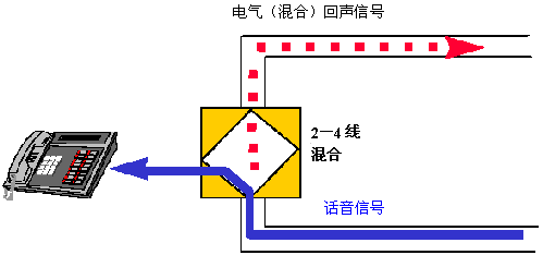 回聲消除器首先是在為長途應(yīng)用而設(shè)計(jì)的網(wǎng)絡(luò)中引入的。長途應(yīng)用中包含過量的傳播延遲,這種現(xiàn)象突顯出了將雙線連接轉(zhuǎn)換為四線系統(tǒng)的混合線路的不完整性。這種混合線路的不完整性被描述為"信號(hào)泄漏"或因阻抗失配而導(dǎo)致的信號(hào)反射,稱為網(wǎng)絡(luò)電氣回聲(也稱為混合回聲)。在圖1中,描述了這種現(xiàn)象。