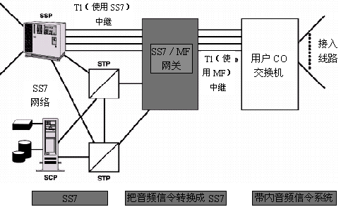 如圖14所示,SS7/MF網(wǎng)關(guān)可以實(shí)現(xiàn)SS7信令到MF(多頻)信令的轉(zhuǎn)換,使現(xiàn)有MF信令交換機(jī)無須升級(jí)就能擁有SS7信令能力。混合了SS7和基于音頻信令的呼叫建立環(huán)境能為各種運(yùn)營(yíng)商經(jīng)濟(jì)實(shí)用的SS7網(wǎng)絡(luò)接入方案,采用這一方案的有蜂窩電話運(yùn)營(yíng)商、本地電話運(yùn)營(yíng)商、長(zhǎng)途電話運(yùn)營(yíng)商和其它一些仍使用舊式交換機(jī)的電話運(yùn)營(yíng)商。
