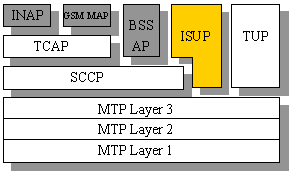 ISUP建立在MTP1、2、3層之上,直接和MTP3層進行通信,大部份的消息都是直接在MTP3和ISUP層間傳遞。只有支持ISDN終端之間的直接通信,ISUP才經(jīng)過SCCP層再連接到MTP3。