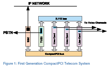 CompactPCI總線是中斷驅(qū)動的,并且提供了對附屬CompactPCI外圍串行卡的確定性的控制。TDM,H.110數(shù)據(jù)總線為各個數(shù)據(jù)傳輸分配時隙。這種低時延的總線為實(shí)時應(yīng)用提供了優(yōu)異的性能。一個IP網(wǎng)絡(luò)(以太網(wǎng))接口能起到管理接入點(diǎn)或電信系統(tǒng)的管理點(diǎn)的作用。這樣的系統(tǒng)或許可以用作基本的計(jì)算機(jī)電話應(yīng)用,例如商用PBX。另外,IP接口可能被用作接入新的增值業(yè)務(wù)。