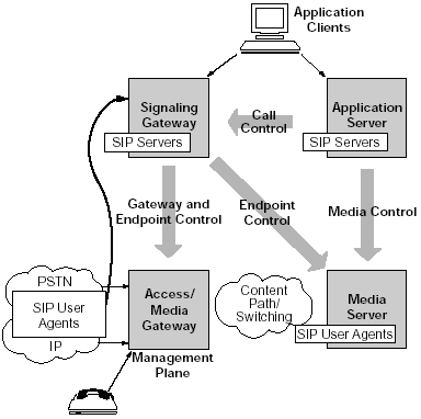 許多語音服務(wù)都是由媒體服務(wù)器提供的。例如,一個(gè)客戶給某個(gè)電子商務(wù)網(wǎng)站打電話會被接到一個(gè)自動語音應(yīng)答(IVR)上或者自動總機(jī)上。這些應(yīng)用使用了語音,語音識別和音頻等功能,都是運(yùn)行在媒體服務(wù)器上的。在下一代網(wǎng)絡(luò)的實(shí)現(xiàn)中,媒體服務(wù)器就象是另一個(gè)電話(或者說,一個(gè)SIP的終端)。因此,他們可以享受和用戶一樣的SIP的優(yōu)點(diǎn)。