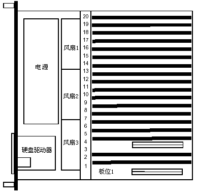 DSC210機箱包括具有20個插槽的無源主板,同時還有一個電源模塊、軟盤驅(qū)動器、風(fēng)扇電源分配器、錯誤檢測模塊和一個前面板顯示卡。