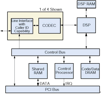 D/4PCIU和D/4PCIUF語音傳真卡基于雙處理器的架構,使用了更快的處理器和更大的內存,既包括了DSP的信令處理能力,也包括了通用處理器的決策和移動數(shù)據(jù)的功能。這種雙處理器的方式把底層的決策功能從主機處理器上移到板卡上處理器上處理,減輕了主機的負擔,允許更簡單的開發(fā)和創(chuàng)建更強大的應用。這種架構處理實時的事件,控制發(fā)往主機的數(shù)據(jù)流來增加系統(tǒng)反應時間,減少了主機的處理負荷,處理DTMF和電話信令,把DSP專門用來處理來電的信令。