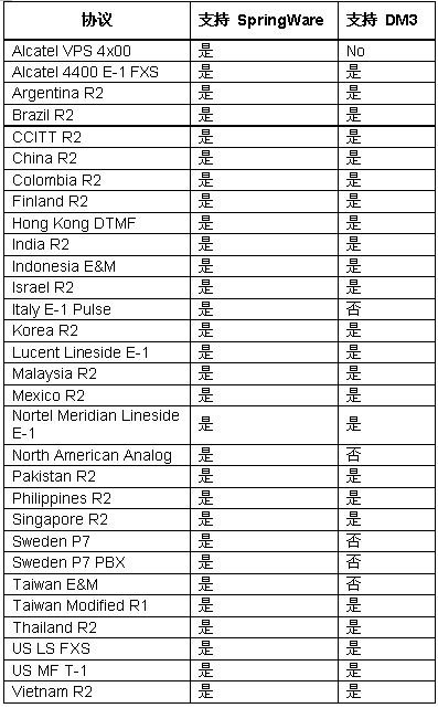 下面的協(xié)議是這個版本中的新協(xié)議。這些協(xié)議可以用在 DM3 和 SpringWare 板卡上, 除了 Alcatel