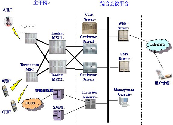 概述 。。今年來,隨著電話會議技術(shù)的不斷成熟,基于計算機平臺的會議型業(yè)務(wù)應(yīng)用越來越活躍,其中電話會議系統(tǒng)、QQ聊天系統(tǒng)以及BGM便是主要熱門應(yīng)用。 。。交互式電話會議系統(tǒng)是一個真正由用戶自己管理的智能型交互式電話會議系統(tǒng),是目前國際上流行的一種召開會議的新形式?蛻衾盟梢噪S時隨地召開本市、國內(nèi)或國際的電話會議,人們無論身在何處,只需撥打一個事先約定的電話會議號碼和密碼,即可參加會議,并且能自由組會,同時發(fā)言,自由交談。可以同時招開數(shù)十方,適用于商務(wù)研討、緊急討論會、信息匯總會、親友聚會等各種各樣的會議。
