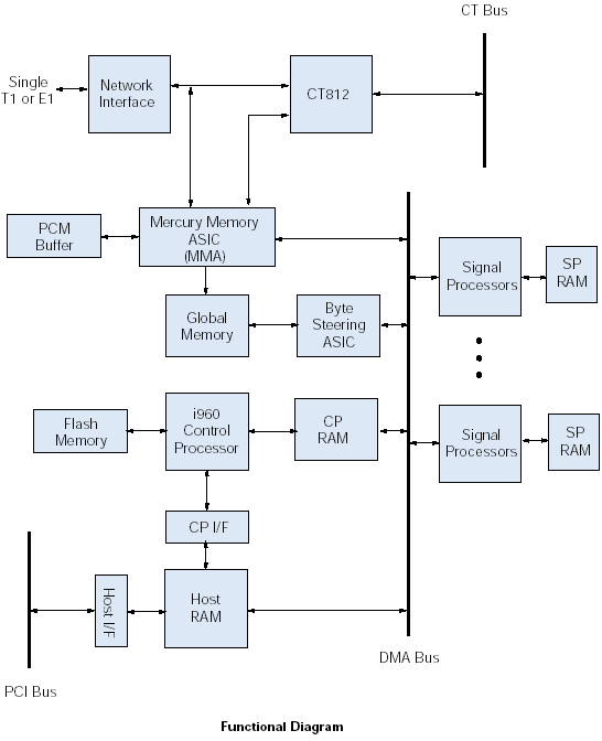 DMVF2401TIPCIU以及DMVF3001E1PCIU板卡將24個(gè)T-1或者30個(gè)E-1語(yǔ)音處理線和14400b/S(v.17)傳真功能進(jìn)行了綁定,該傳真功能可以具有傳真機(jī)的所有基本功能,甚至更多,包括傳送和接收多個(gè)文件、輪詢功能、廣播功能以及重復(fù)輪詢。該種板卡采用了雙重處理器的結(jié)構(gòu),這種結(jié)構(gòu)組合了DSP的信號(hào)處理功能和通用控制微處理器的策略決定、數(shù)據(jù)移動(dòng)功能。板卡為以下資源提供了呼叫處理的能力:從電話網(wǎng)傳來(lái)的T-1或者E-1電話信號(hào);共享通過(guò)CT