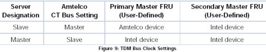 圖9列出了系統(tǒng)中的主控服務器和受控服務器的TDM總線的時鐘設(shè)置,