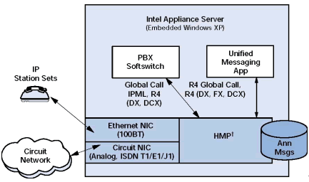 PBX 應(yīng)用可以被實(shí)施在一個低成本的Dialogic應(yīng)用設(shè)備或一個使用Dialogic處理器的普通臺式計(jì)算機(jī)上. 最終用戶可以根據(jù)需要選擇平臺.