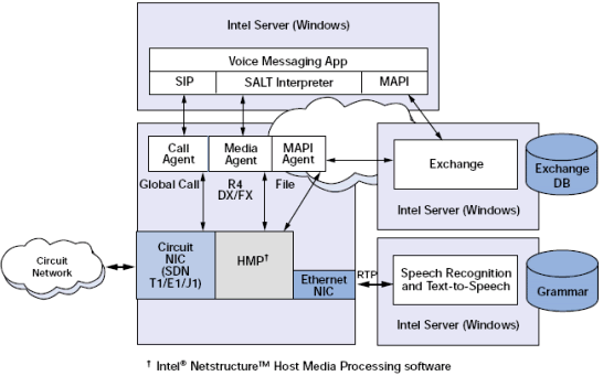 語音消息流通過MAPI文件過濾, 在HMP軟件和Exchange數(shù)據(jù)庫之間.